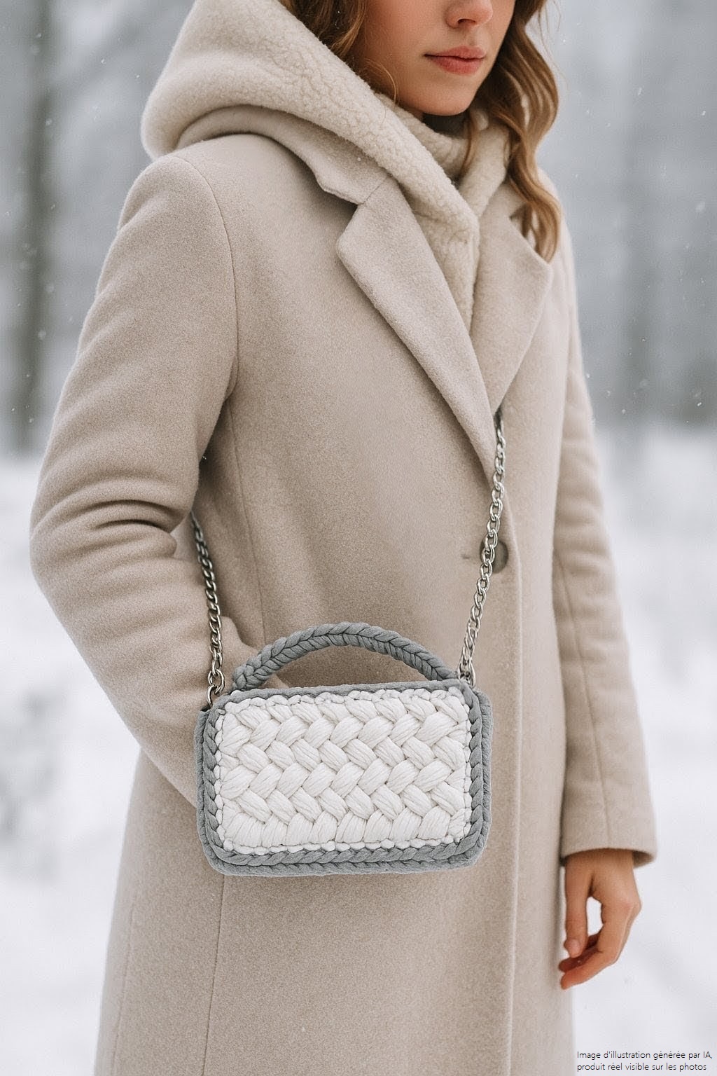 Le sac LUNA est un sac en crochet bohème fait main, réalisé en France avec soin. Son allure élégante et légèrement mystérieuse en fait un accessoire de caractère, idéal pour sublimer une tenue du quotidien.