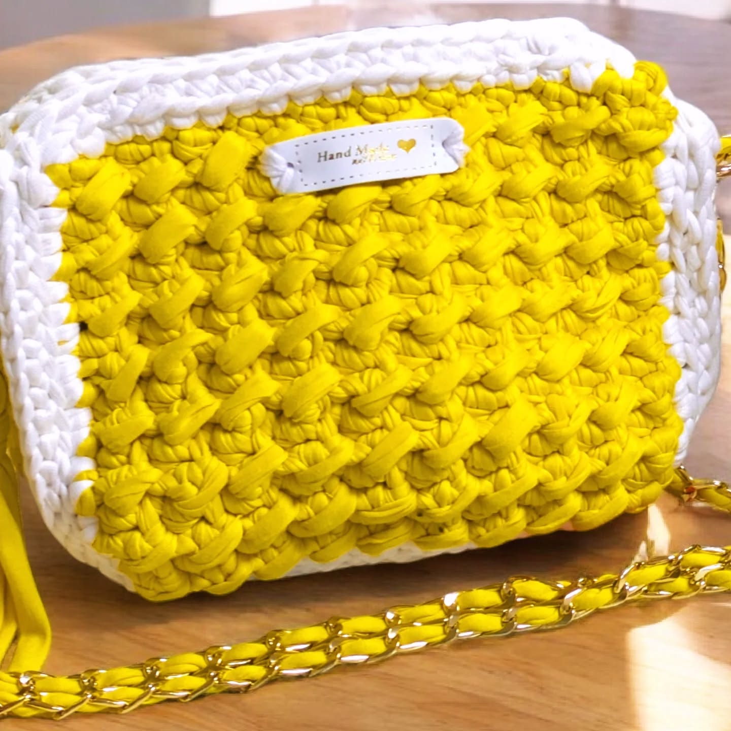 – Composition : 90 % coton, 5 % polyester, 5 % autres fibres | Oeko Tex | Doublure en tissu 100% coton (en option) | Chaine de sac dorée, 120 cm, épaisse, tissée d’un ruban de fil |Boutons magnétiques |Pompom décoratif
